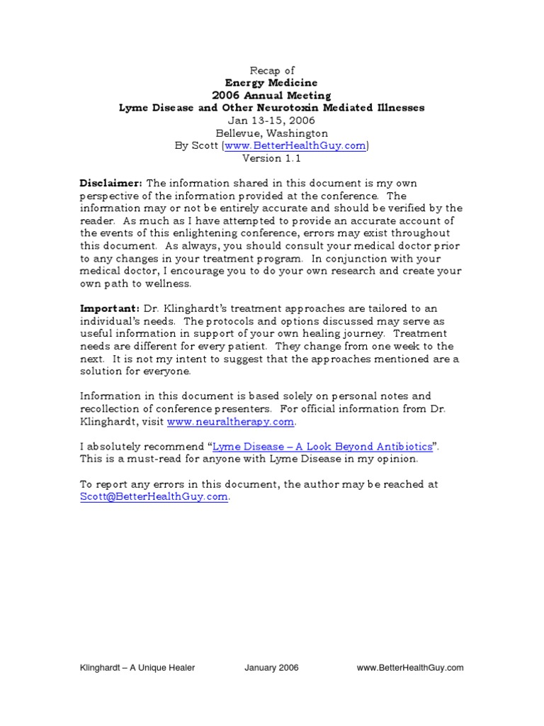 Night sweats and brain fog are often observed with Babesia. Dietrich Klinghardt about Lyme Disease - YouTube. In the last decade the majority of outcome-oriented physicians observed a major shift. The Klinghardt Protocol based on over 900 successful treatment cases The treatment of Lyme disease requires 4 distinctive steps. Decreasing microbial count 4. Klinghardt continued with sharing. Whether true or not clearly there are those who have it and are severely disabled by it.