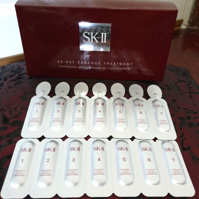 Đăng kí để nhận bản tin. SK-II 28 Day Essence Treatment Whitening Spots Specialist Concentrate. To be honest I quit using SK-II 28-Day Essence Treatment for a week while I was curing my acne problem.